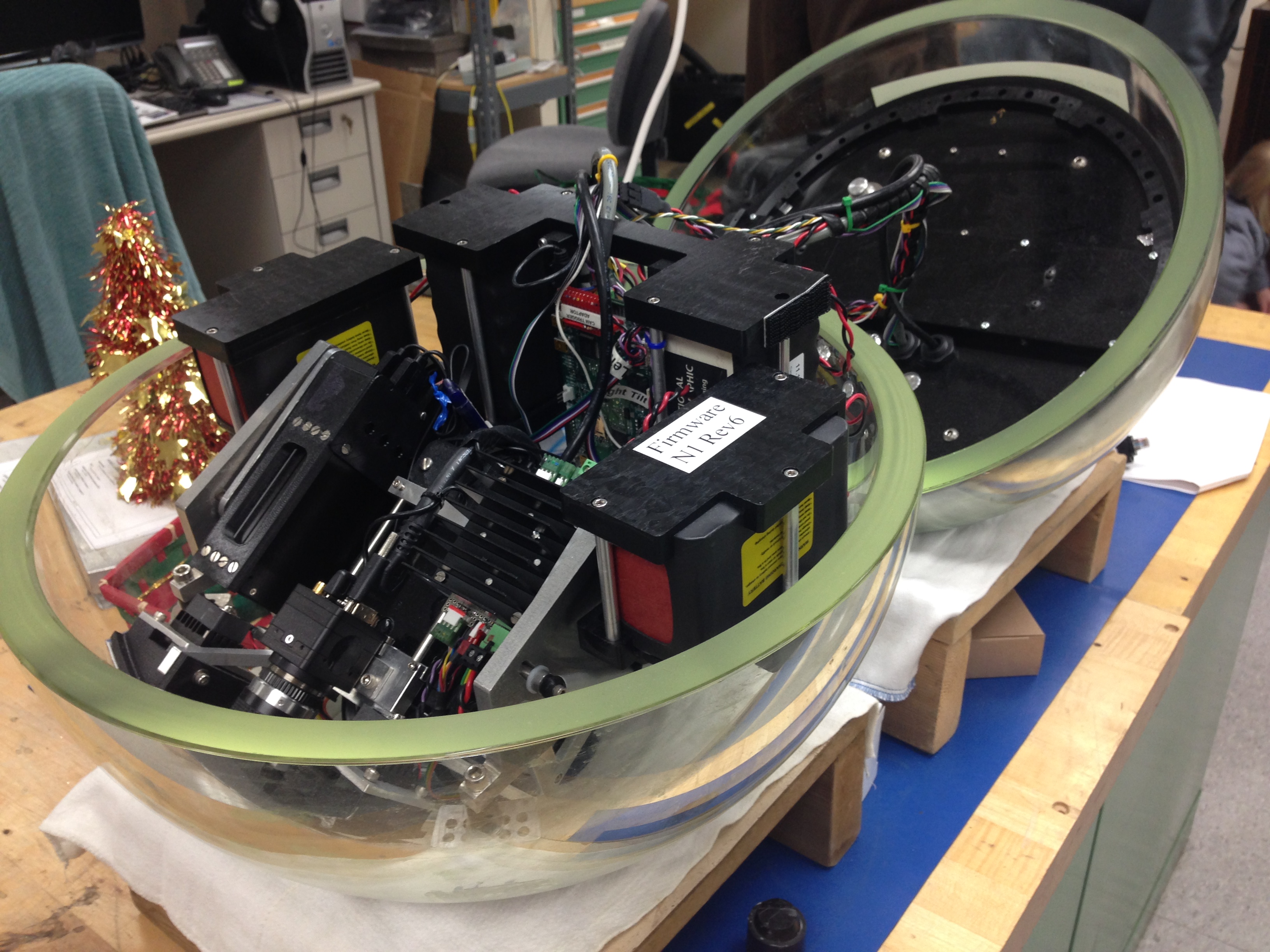 Eric and Mike showed us their lab and the many projects they are involved in. The lab is full of precision machining equipment to craft the parts they need and in the corner there is a new 3D printer labeled “The Future”. The 3D printer is not able to replace the need for machined metal parts, but it does allow them to quickly build prototype pieces and parts that are not subjected to critical stress. On one of the walls there is a large high-definition television where they were able to share footage with us from many of their projects.