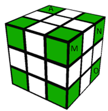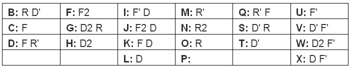 When you look at the sticker in the S location, you will see the sticker for the buffer location. Remember, you do not need to memorize the letter for the buffer piece. Something else important to remember when doing the 3×3 cube is to note that there is an odd number of letters. This will also mean that there will be an odd number of letters for the edges and we have parity. Parity is something we will talk more about when we solve the edges.